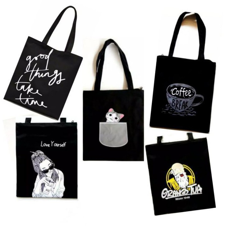 halo inilah Alasan kenapa harus beli Totebag Sablon Dinnir / Pakai Resleting Tas Belanja / Tas Kuliah / Tas Sablon sekarang dan jangan tunggu nanti