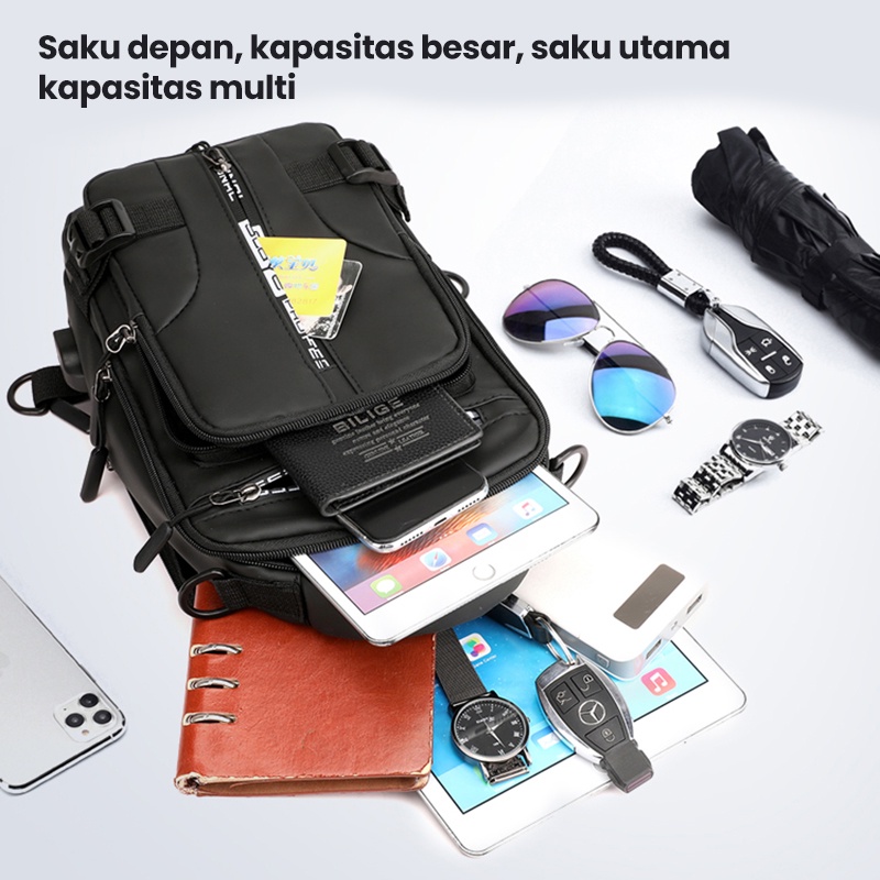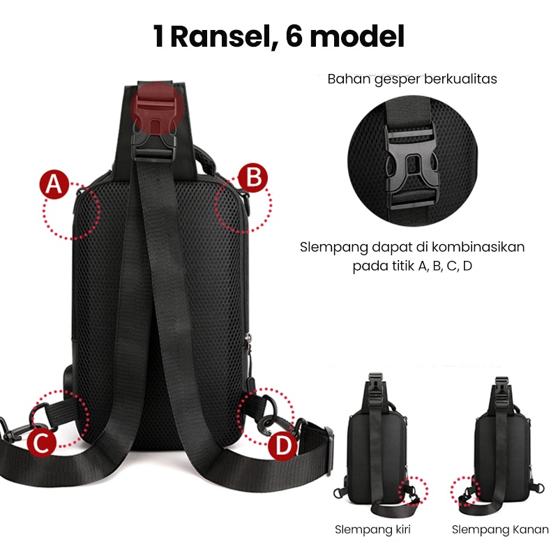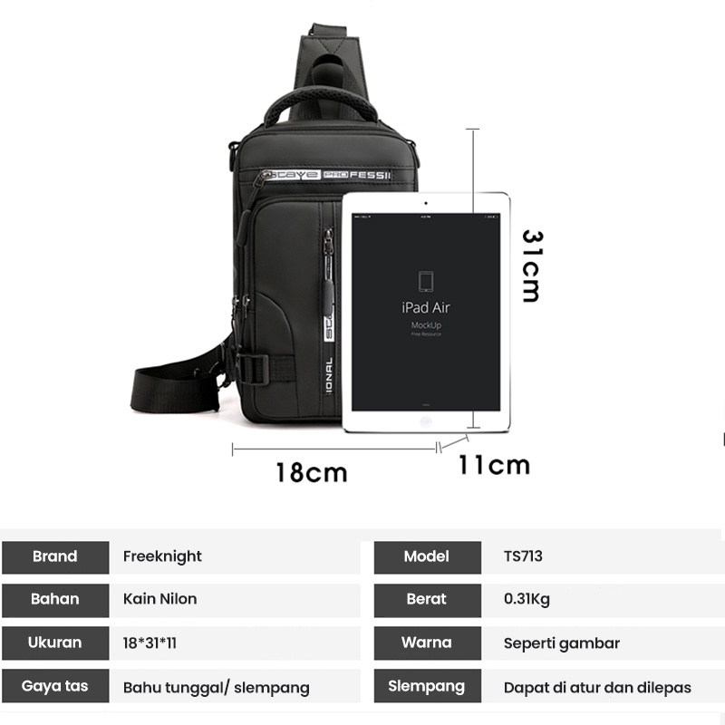 Kelebihan - Kelebihan membeli Freeknight Tas Selempang Pria Keren Multifungsi Waistbag Sport USB Charge Fashion Slempang Waterproof TS713 di Toko ini