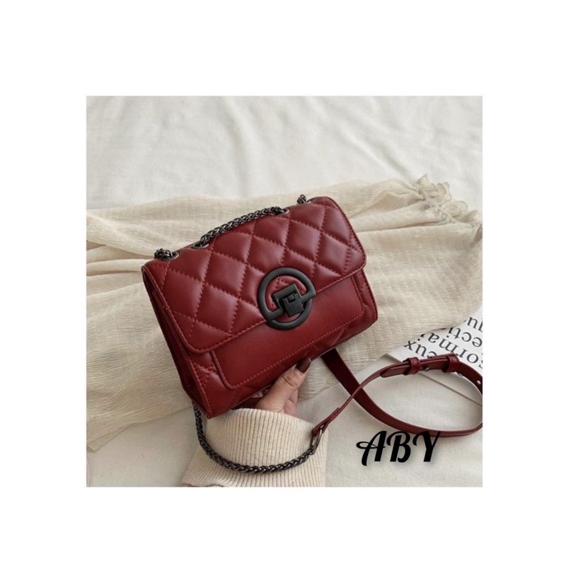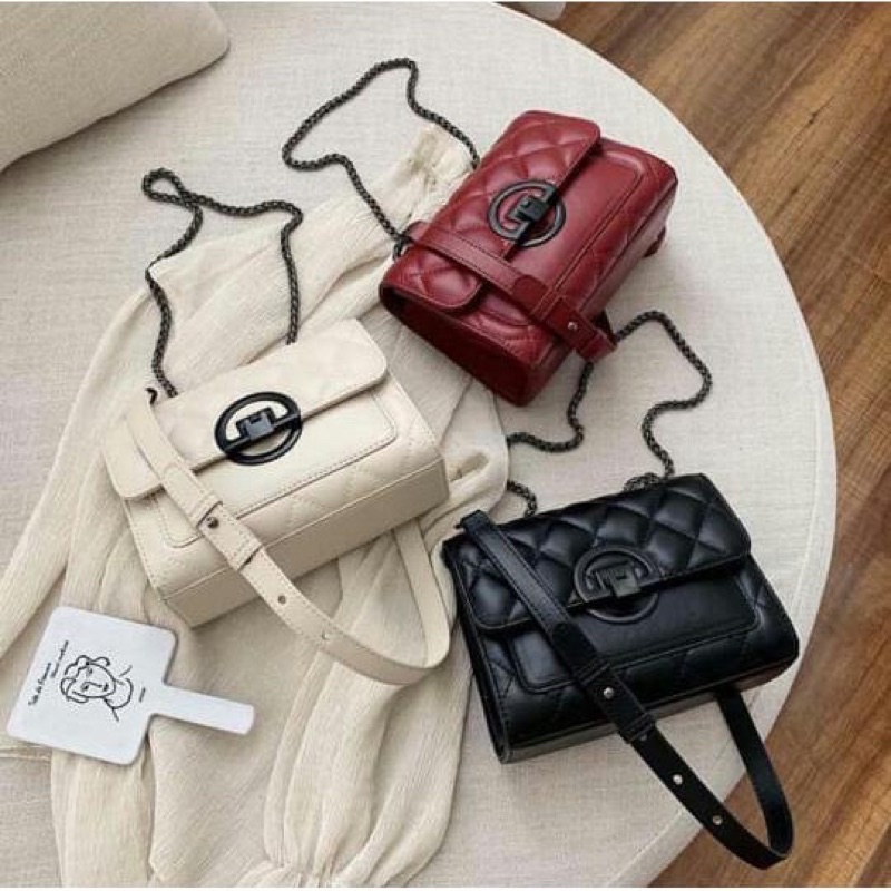 Tas Selempang Bordir Kotak-kotak Model Chibao Terbaru Banyak Ruang (Sleting Lima)