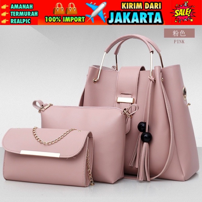 halo inilah Alasan kenapa harus beli TI 3039 - TAS PAKET WANITA 3 IN 1 HANDBAG WANITA MURAH BATAM - B sekarang dan jangan tunggu nanti