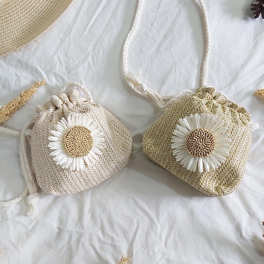 Kelebihan - Kelebihan membeli Tas Selempang Wanita Anyaman Jerami Bucket Serut Sling Bag Daisy di Toko ini